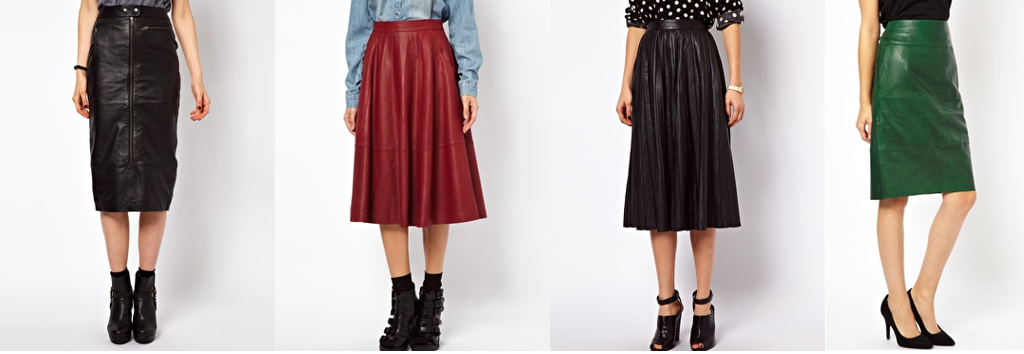 ASOS has a plethora of styles and colors (and real leather!) at great prices. Biker Skirt in Leather. Leather Midi Skirt with Pockets. Midi Skirt in Pleated Leather. Urban Code Green Leather Pencil Skirt.